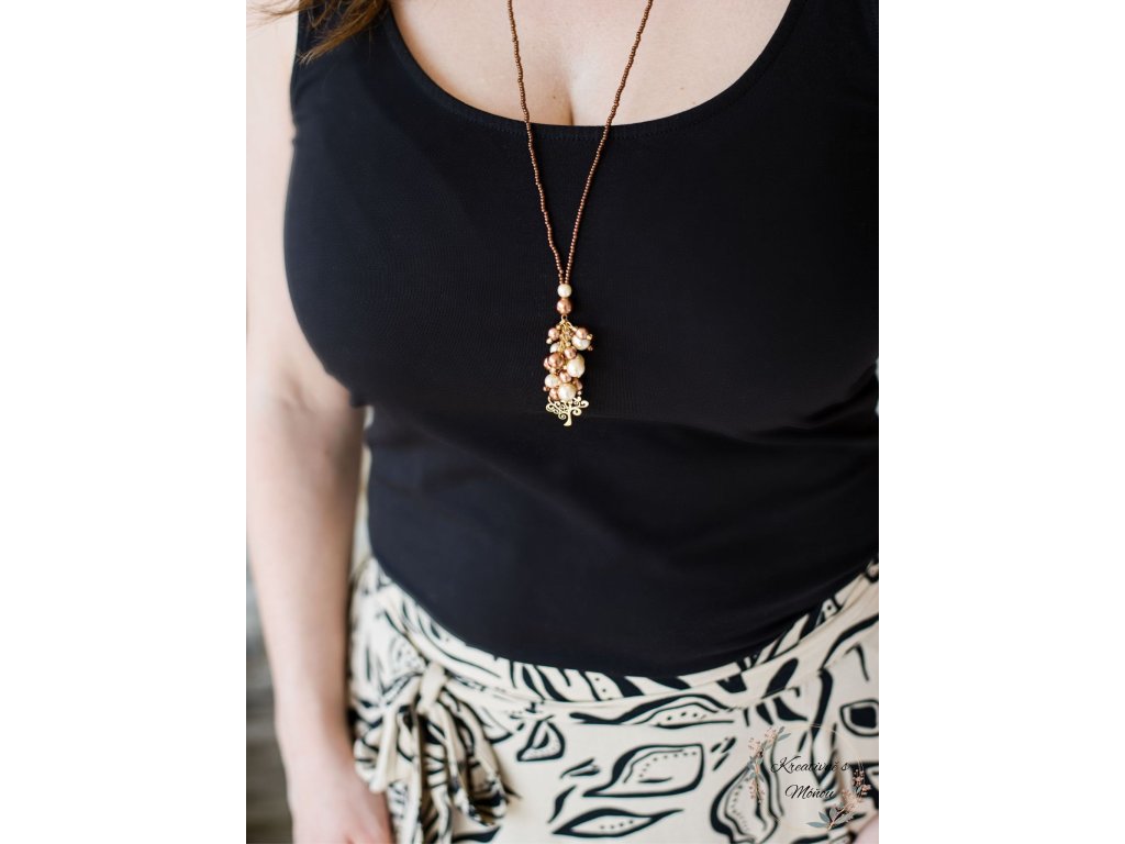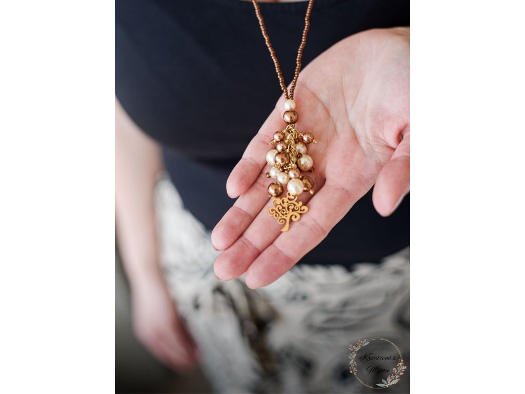 Dlouhý korálkový náhrdelník - Strom života (zlatá galvanizace)