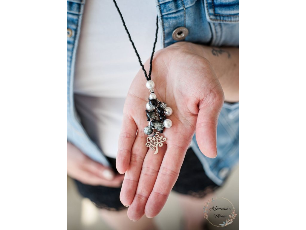 Dlouhý korálkový náhrdelník - Strom života (ocel)