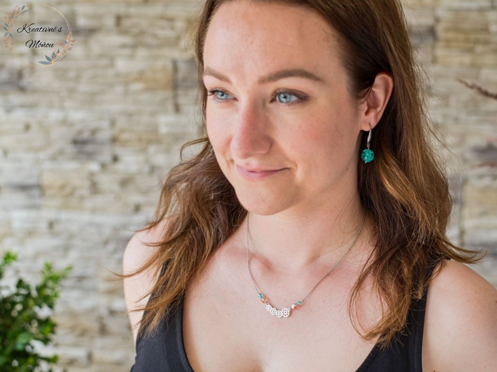 - Řetízek s lososovými a tyrkysovými korálky